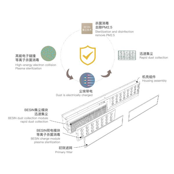 Micro static electricity, as a new generation of purification technology, is an electronic purification and disinfection technology created through thorough innovation of materials and structures, which is efficient, low resistance, high dust tolerance, green and energy-saving, good weather resistance, and can be used in harsh and complex environments.